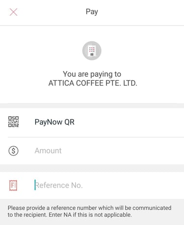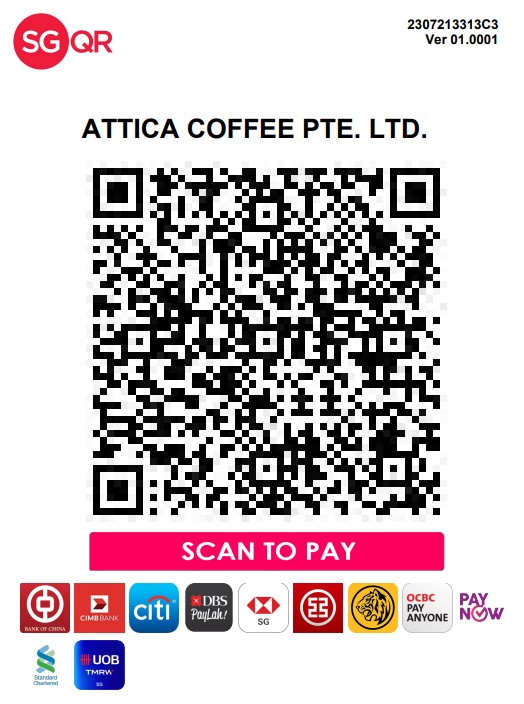 Pay via UEN: 202328188K (Attica Coffee Pte Ltd)