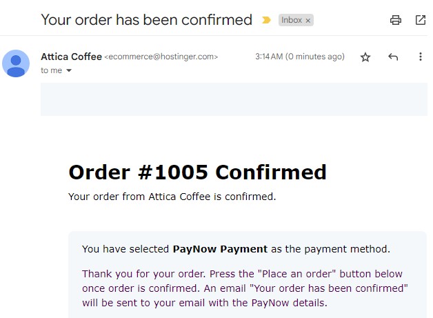 Please include your order/invoice number (which will be generated after clicking order) in the Reference Number field (for example order if order #1005, type 1005 in the Reference No.) and email the confirmation page to orders@atticacoffee.com